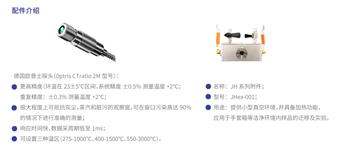 通过该装置,针对导电材料,科学家可利用其自身的焦耳效应,对其施加电气环境;针对非导电材料,则可通过我司配备的各类耐高温极速加热样品台进行加热,从而使材料在极短的时间内(0~10 S)达到极高的温度(1000~3000 ℃),升温速率最快可达到10000k/s。