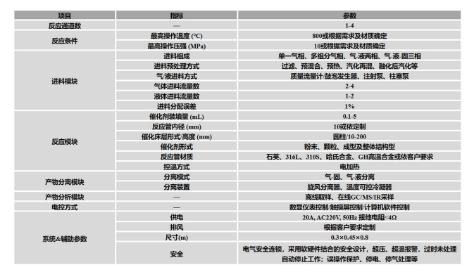 合肥原位(桌面)微型固定床反应器适用于实验室工作台面,具有体积小、结构紧凑、模块化设计便于组装改进等特点。可根据反应体系定制反应通道、气液路数量、分离装置类型&尺寸以及取样分析方式,完美契合客户实际需求.安全性:电气安全连锁,采用软硬件结合的安全设计,超压、超温 报警,过时未处理自动停止工作;误操作保护;停电、停气处理等。