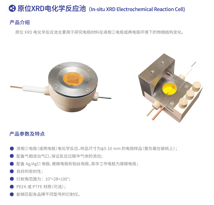 我司可根据用户需求定制通气、加热、通电等环境以及适配各类X射线衍射仪的原位XRD电化学反应池。